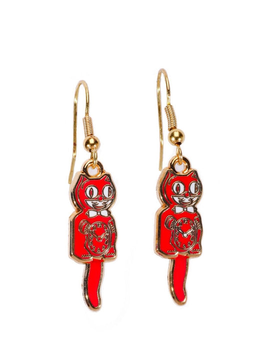 Original Kit Cat Earrings Red With Gold complete with pivot tails that swing