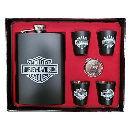 Motor Harley Davidson Cycles Hip Flask And Shot Metal Glass Set Black Unique Gif