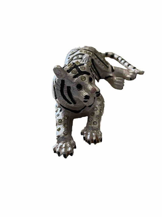 White Tiger Jewelry Trinket Box Collectible Crystals Jeweled Hinged Enameled Gif