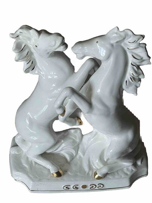 Vintage 1980s Dual Love Horse Figurine Ceramic Home Decor Large 50Cm 40cm Width