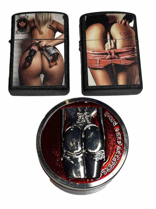 2 Pack Jack Daniel Windproof Oil Lighters Herb Grinder Tobacco Stash Tin Gift
