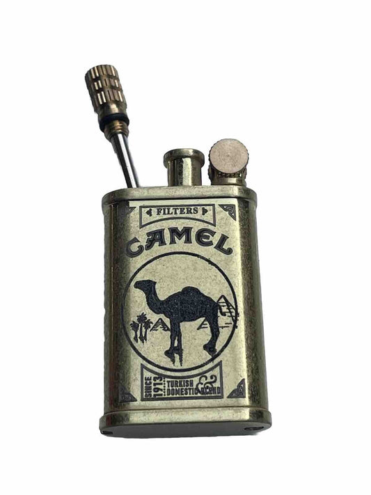 2 in 1 Lighter Camel DesignMatch Stick Antique Brass Lift Arm Oil Camping Winter