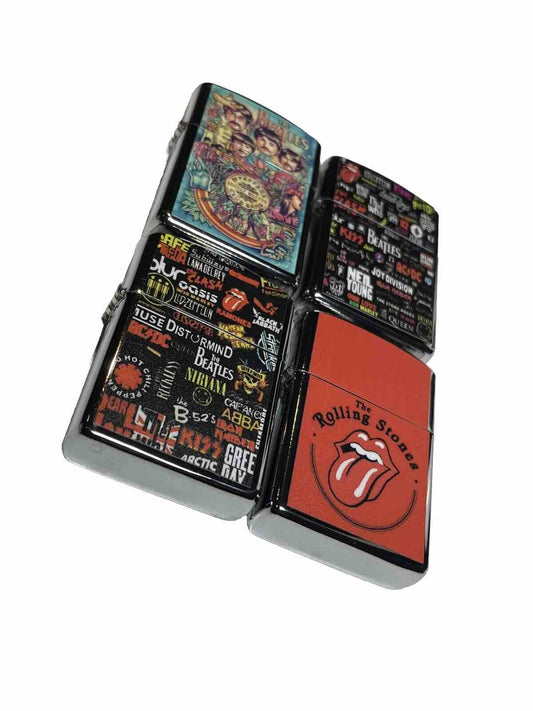 4 PCs Windproof Oil Lighters World Band Names Novelty Gift For Music Lovers