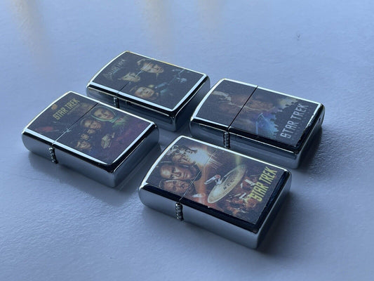 4 PCs Windproof Oil Lighters Star Treck Movie Posters Novelty Lighters Set Gift