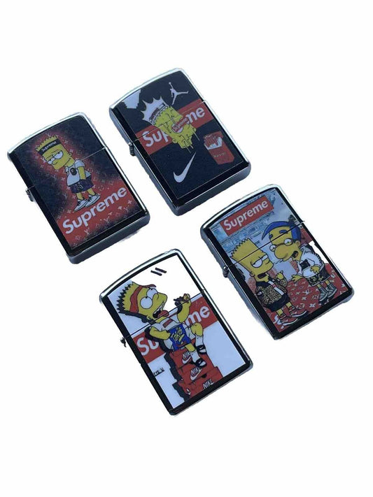 4 PCs Windproof Oil Lighters Set Novelty Supreme Bart Simpson Character Lighters