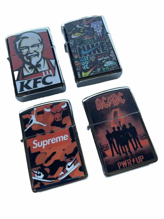 4 PCs Windproof Oil Lighters Set Novelty Supreme KFC AC DC Band Nike Designs