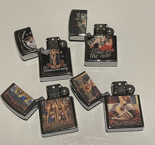 4 PCs set windproof Oil Lighters Unbranded Main Street American poker at rear