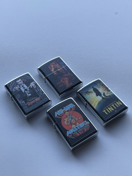 4 PCs Windproof Lighter Set Movies Novelty He Man Tintin Dracula Horror Movies