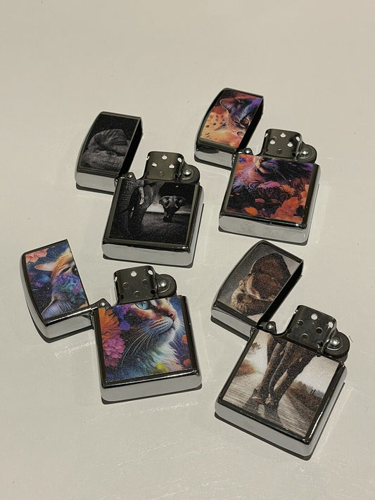 4 PCs set windproof Oil Lighters Unbranded lucky cat art and elephant designs