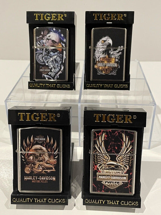 4 Nos Harley Davidson Windroof Oil Lighters Tiger Brand Zippo Fluid Quality Gift