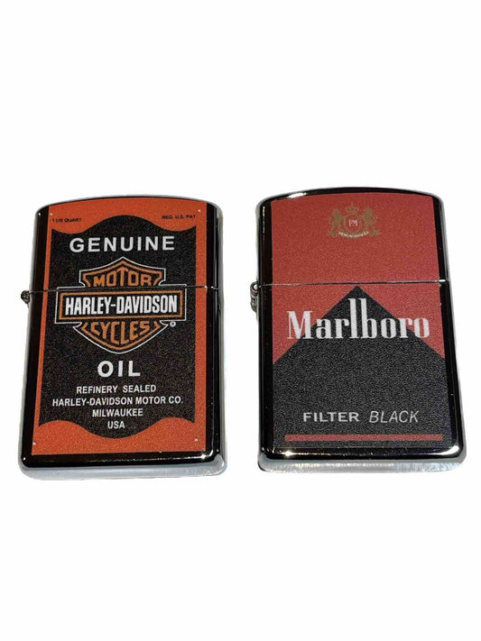 4 PCs Windproof Oil Lighters Unbranded Marlboro Camel Harley Davidson 2023 New