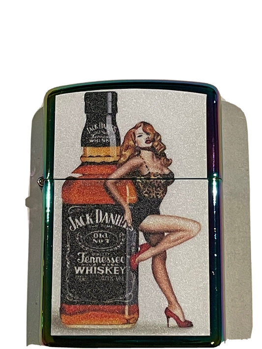 4 PCs Windproof Oil Lighters Unbranded Jack Daniels No 7 Moon Shine Nude Garage
