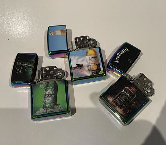 3 PCs Windproof Oil Lighters Jack Daniels Corona Heineken Novelty Lighters Set