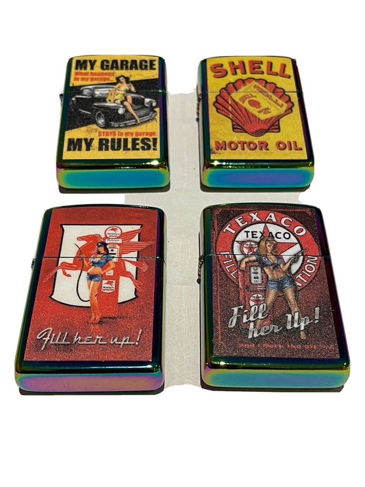 4 PCs Windproof Oil Lighters Unbranded Shell Texaco Mobil My Garage Rules 2023