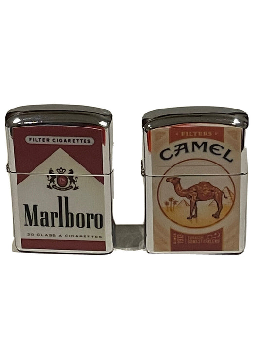 2 Pcs Windproof Oil Lighters Unbranded Marlboro And Camel Design High Quality