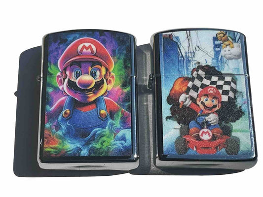 2 pcs windproof oil lighters super mario racing designs novelty lighter No Brand
