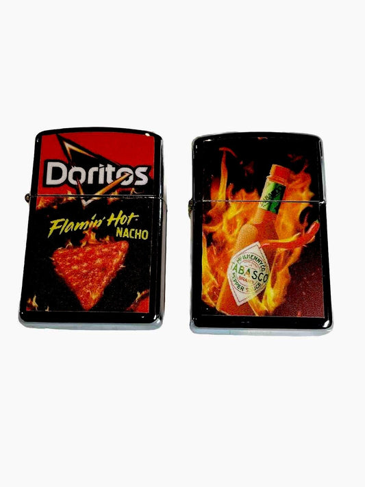 2 PCs Windproof Oil Lighters Tabasco &Doritos Design Novelty Gift For Collectors