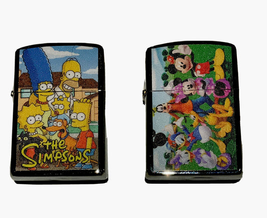 2 Pieces Set Unbrand Petrol Windproof Lighter Simpsons And Walt Disney Novelty