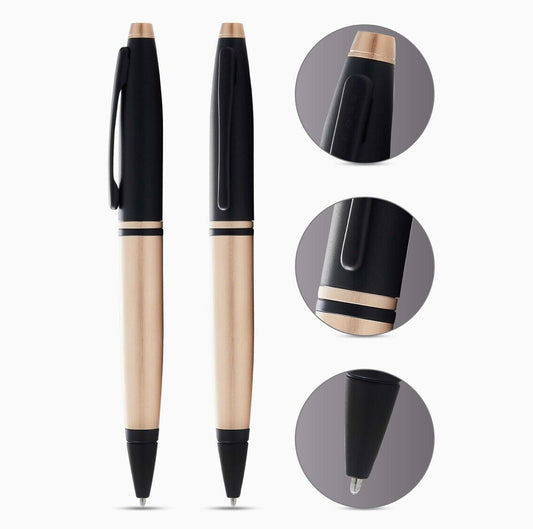 Genuine Cross Calais Brushed Rose Gold Plate and Black Lacquer Ballpoint Pen USA