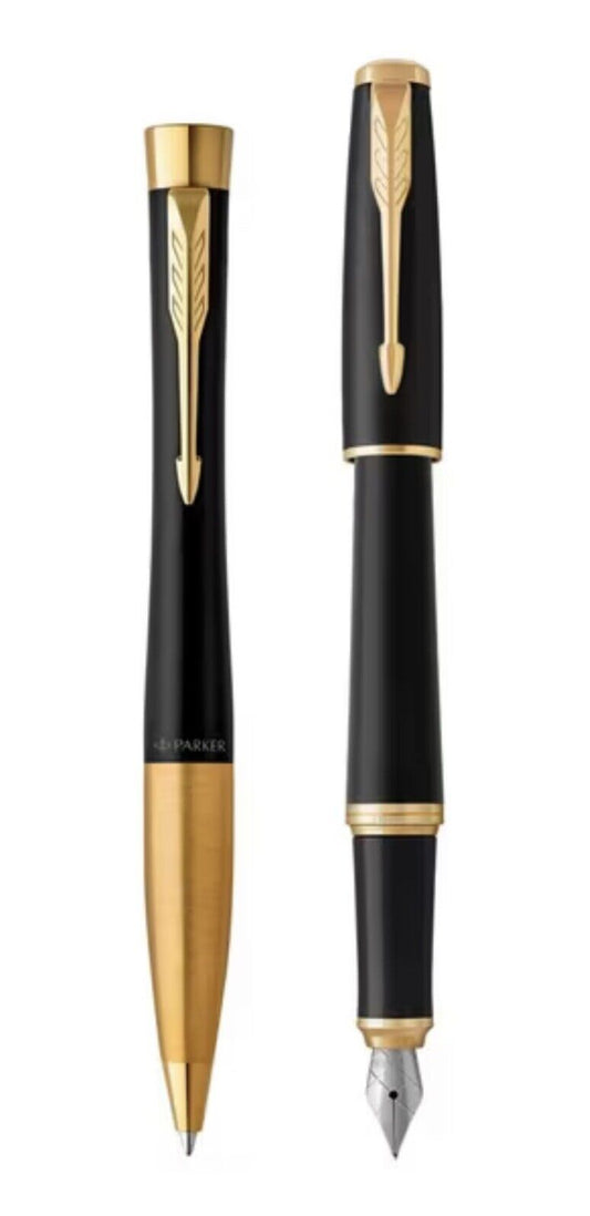 Parker Urban Ballpoint And Fountain Pen Black/Gold Gift Set Duo Set Great Gift