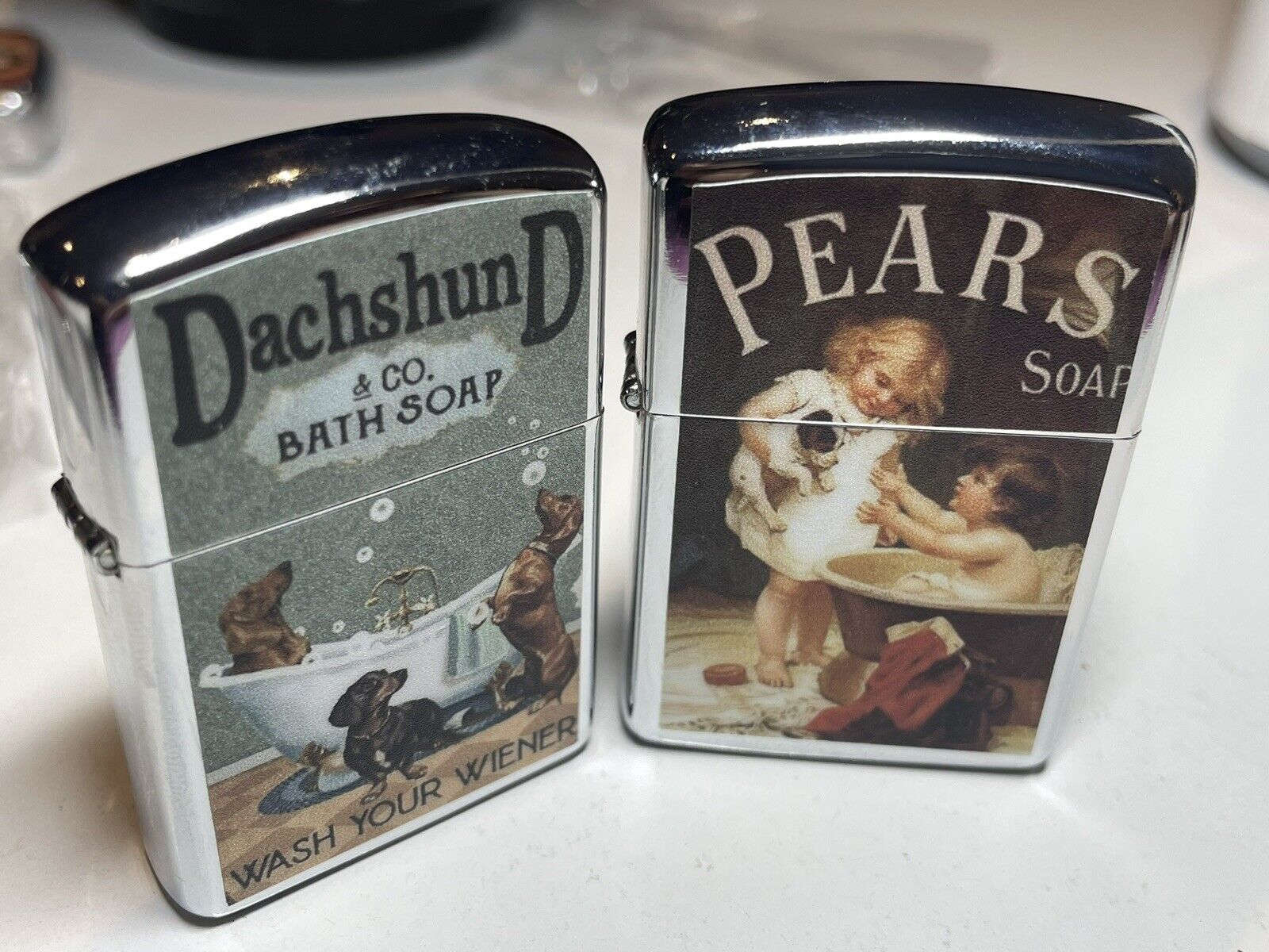 4 PCs Windproof Oil Lighters Vintage Designs Jack Daniels Ned Kelly Pears Soap